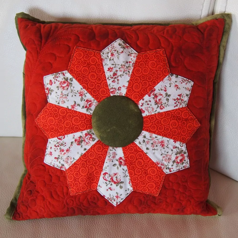 * Originální patchworkový polštář s aplikací "Drážďanského talíře" ušité z předepraných 100% bavlněných látek.