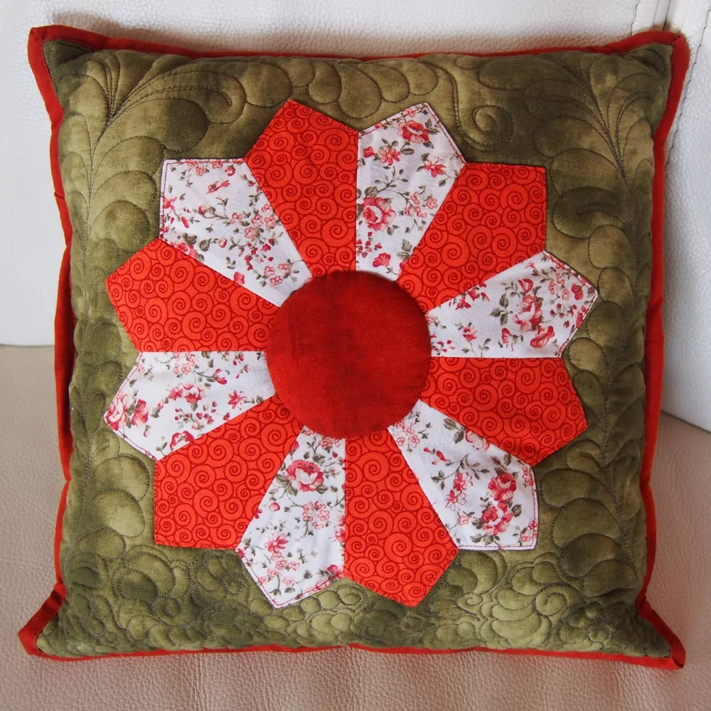 * Originální patchworkový polštář s aplikací "Drážďanského talíře" ušité z předepraných 100% bavlněných látek.