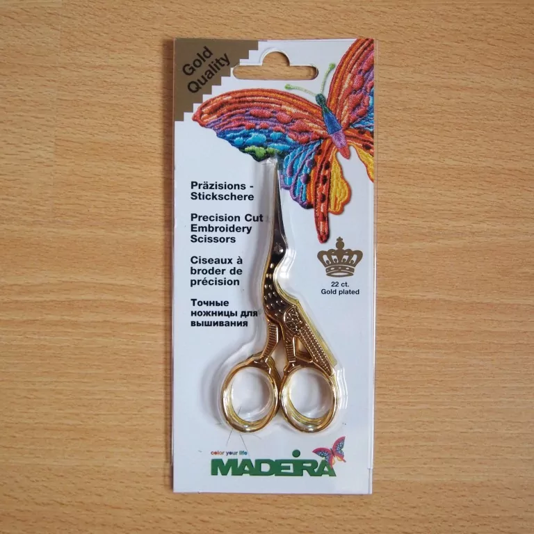 Vyšívací nůžky s úzkými ostrými špičkami zlacené 22 karatovým zlatem nejen pro vyšívání, ale také pro patchwork.