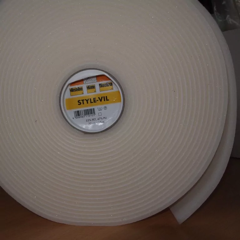 Pevný výztuhový materiál - "pěnovka" vhodný do tašek, kabelek, toaletních kabelek apod. Jedná se o slabý molitan oboustranně potažený textilií. Drží pěkně tvar, dobře se s ním pracuje. Je možné prát na 30°C nebo chemicky čistit, nežehlit, nesušit v sušičce!