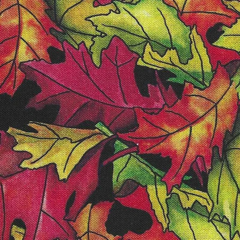 Látka na patchwork s motivem listů z podzimní kolekce A Pilgrim's Autumn z produkce firmy QT fabrics.